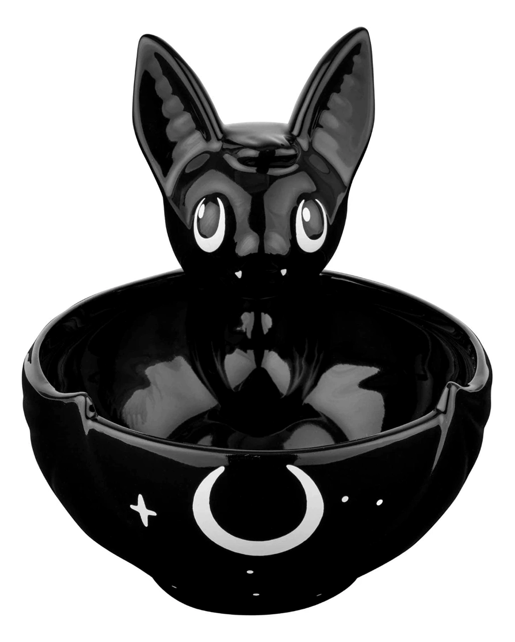 Die hochwertige Batty Fledermaus Schüssel KILLSTAR eignet sich übrigens auch wunderbar als Geschenkartikel für Gothic und Halloween Fans. Die Müsli Schüssel ist aus schwarz bemalter Keramik und besitzt die Form einer Fledermaus, die aus ihren Flügeln heraus eine Schale bildet. Sie sieht dich mit ihren großen Augen an, als wollte sie sagen: “Bitteschön, das ist für dich.” Spätestens jetzt kann niemand mehr widerstehen. Die Mondsichel und die Sterne, die an eine klare finstere Nacht denken lassen, komplettieren das düstere Gothic Design.