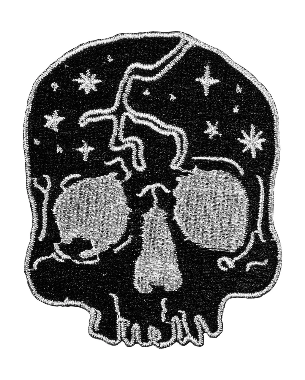 Dekoriere mit dem gestickter Totenschädel mit Sternen deine Kleidung
