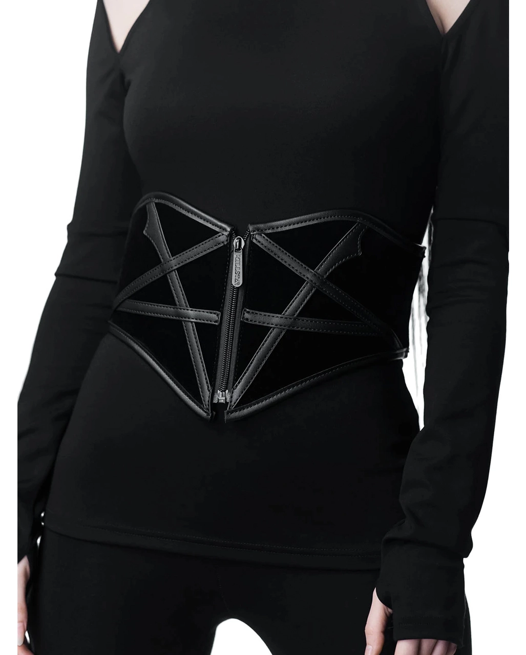 Das Draconian Unterbrust Korsett KILLSTAR ist ein schwarzes Kunstleder Korsett mit besonderem Flair. Dafür sorgt das Pentagramm auf der Vorderseite. Das Taillenkorsett ist praktischerweise mit einem Reißverschluss ausgestattet. Zu Röcken und Hosen sieht das schwarze Gothic Korsett einfach großartig aus und wertet jeden Look auf. In unserem Onlineshop findest du passende Oberteile, Schuhe und noch mehr Gothic Kostümzubehör für deinen perfekten Style!