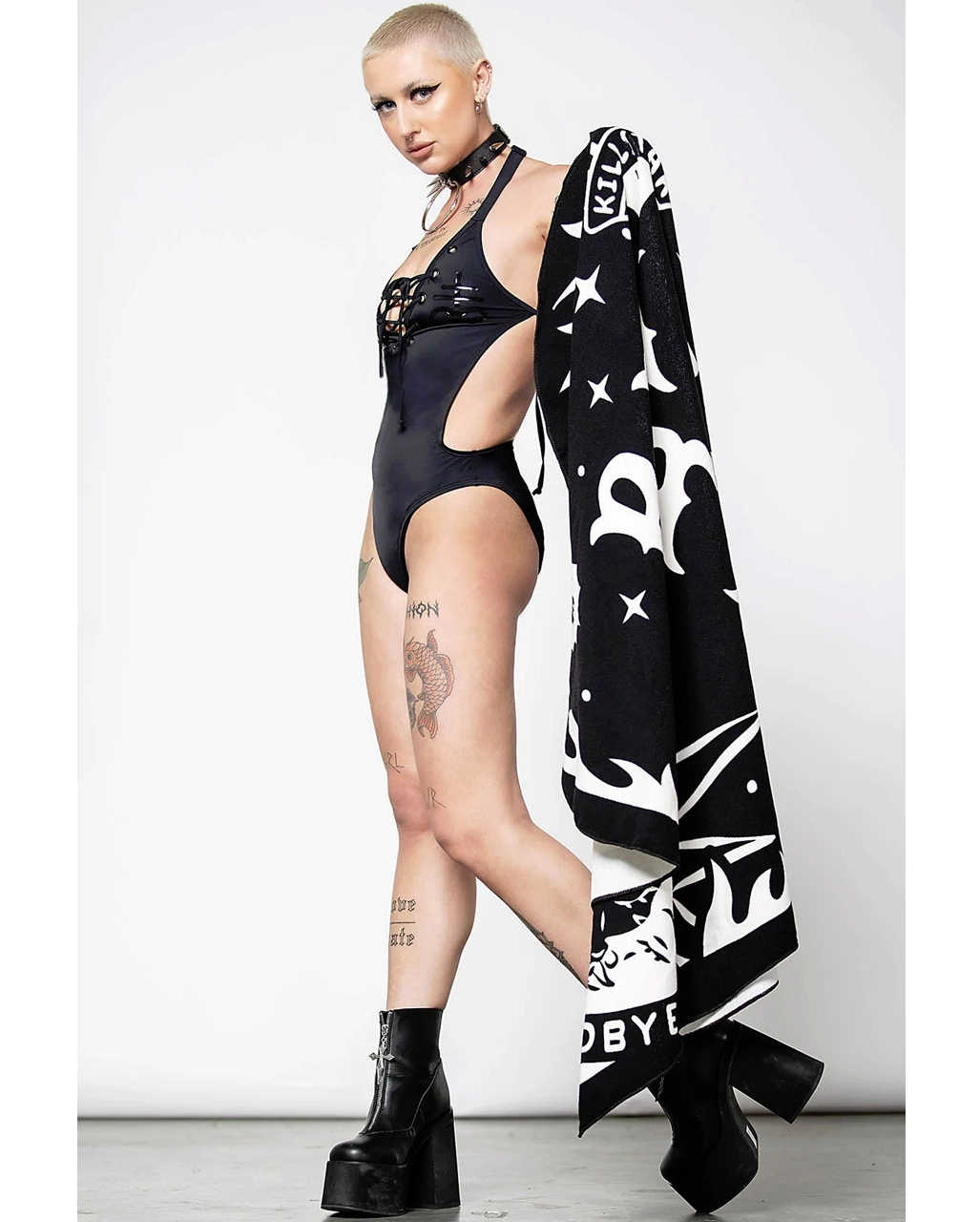 Wenn eine Gothic mal ne Auszeit braucht, fährt er an den Strand oder an den Badesee. Da darf das passende Strandtuch natürlich nicht fehlen. Damit dein Urlaub perfekt wird, bietet das Gothic Herz Strandtuch von KILLSTAR höchsten Komfort. Ob als weiche Unterlage auf der Strandliege oder zum Abtrocknen nach dem Baden. Unser schwarzweißes Strandtuch überzeugt sowohl optisch als auch qualitativ.