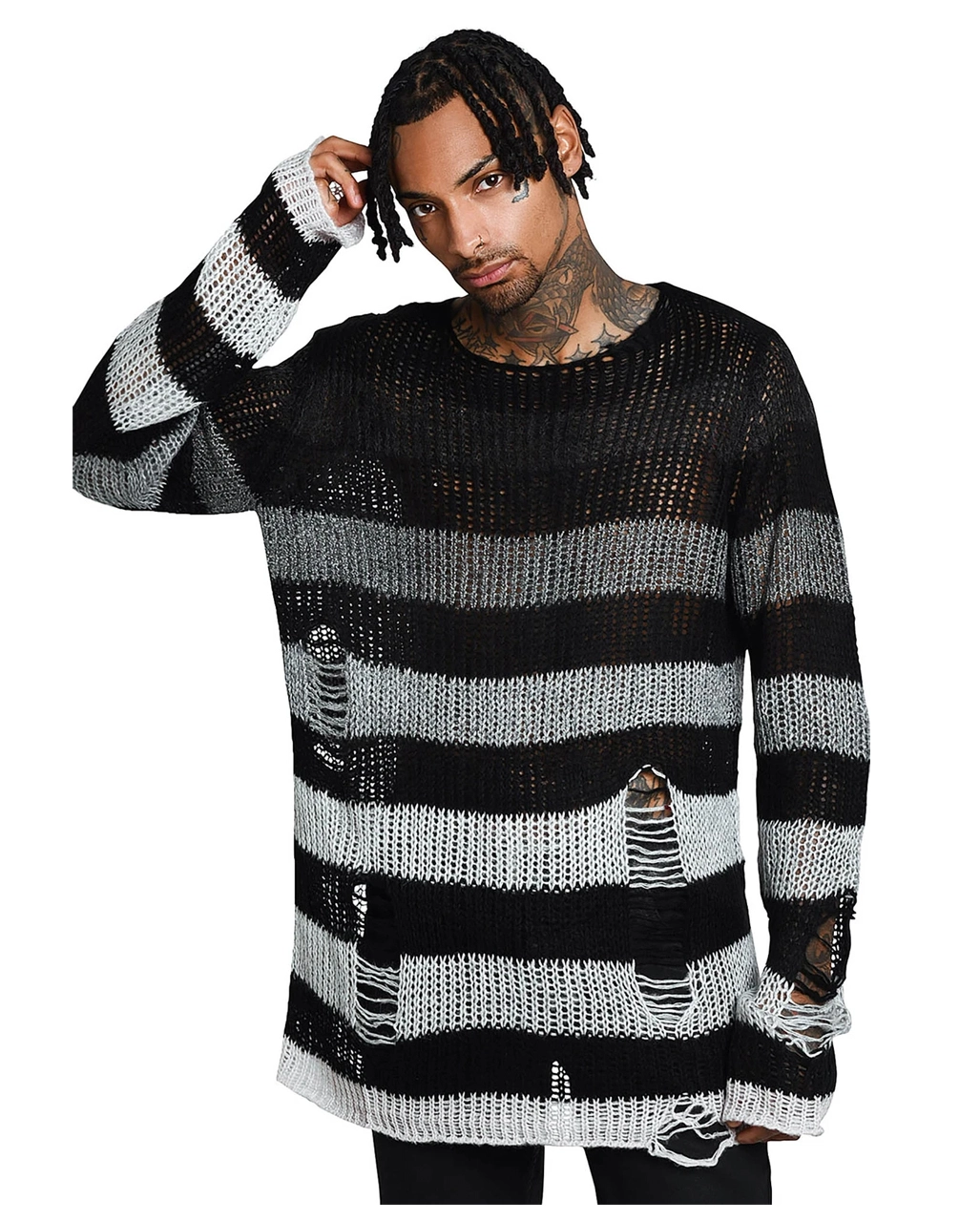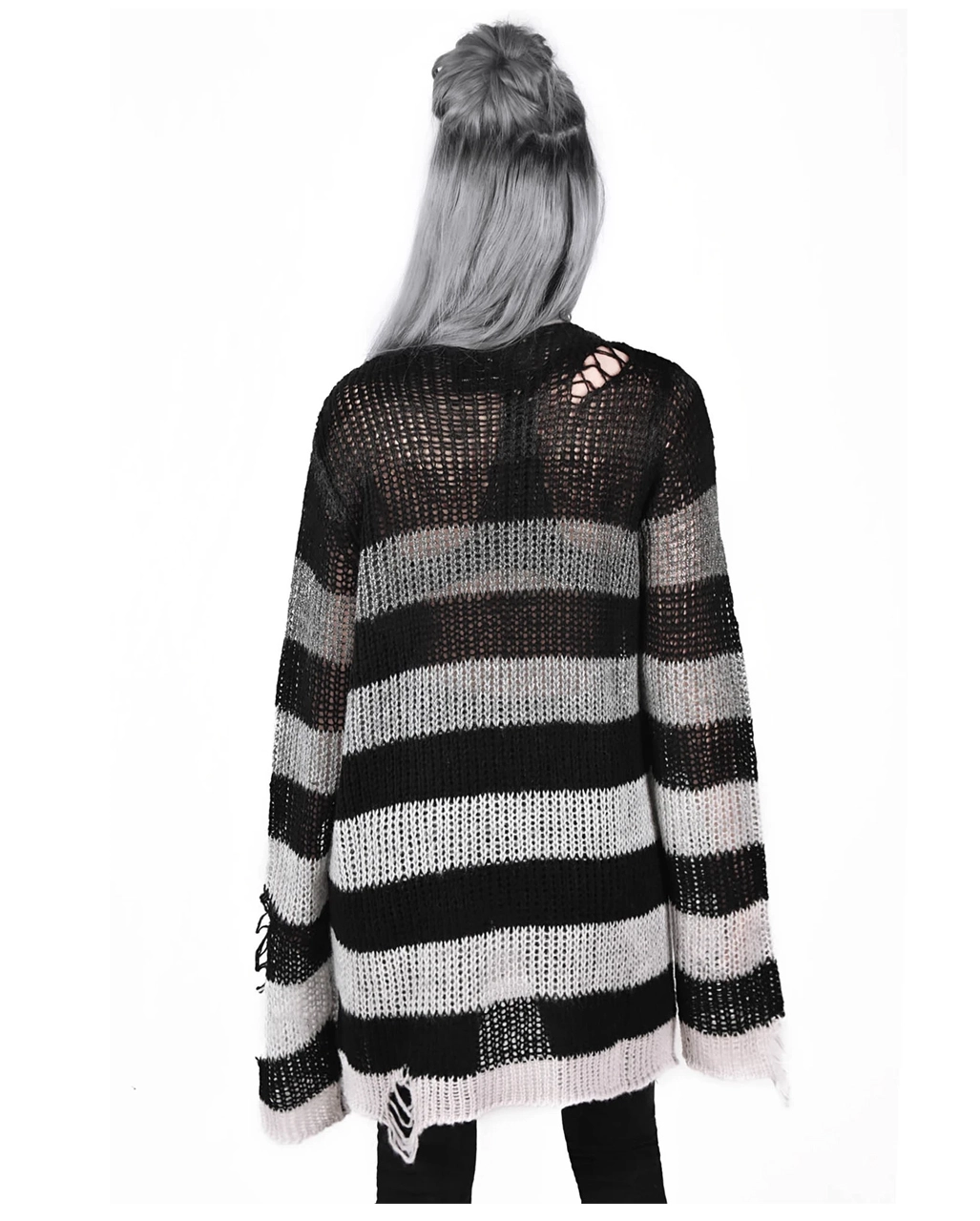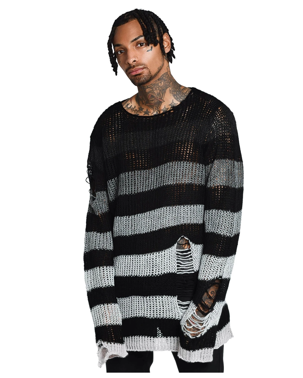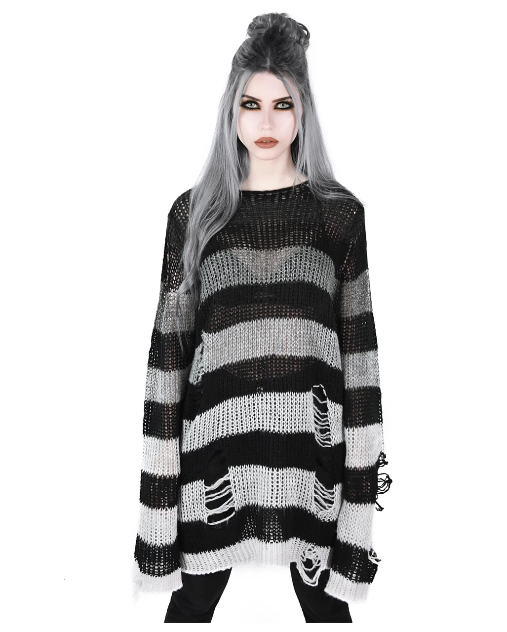 Der weiche KILLSTAR Grady Strickpullover erinnert an den Grunge der 90er Jahre und eignet sich perfekt zum Überziehen – oder zum Tragen als Einzelstück. Schwarz und gedämpft grau-weiß gestreift, mit extra langer Länge für einen relaxten Look. Mit Distress-Details und tiefem Ausschnitt. Ideal für Festivals, Mitternachtsspaziergänge mit dem Mond und verkatertes Sonntagsvergnügen. Kombinieren den KILLSTAR Grady Strickpullover mit schwarzen Leggings und einem eleganten Halsband für deinen legeren Look.