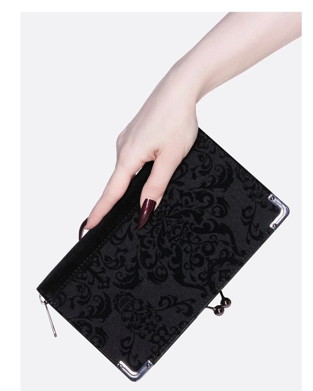 Unser Haunted Soul Geldbeutel von KILLSTAR ist schön verziert und überzeugt mit einer superweichen Oberfläche. Auf der Vorderseite zeigt sich ein beflocktes Samtmuster sowie. Ein Clipverschluss, mehrere Reißverschlussfächer und Taschen machen dieses Gothic Portemonnaie zum praktischen Begleiter. Der Geldbeutel findet Platz in unserer Black Widow Schultertasche KILLSTAR.