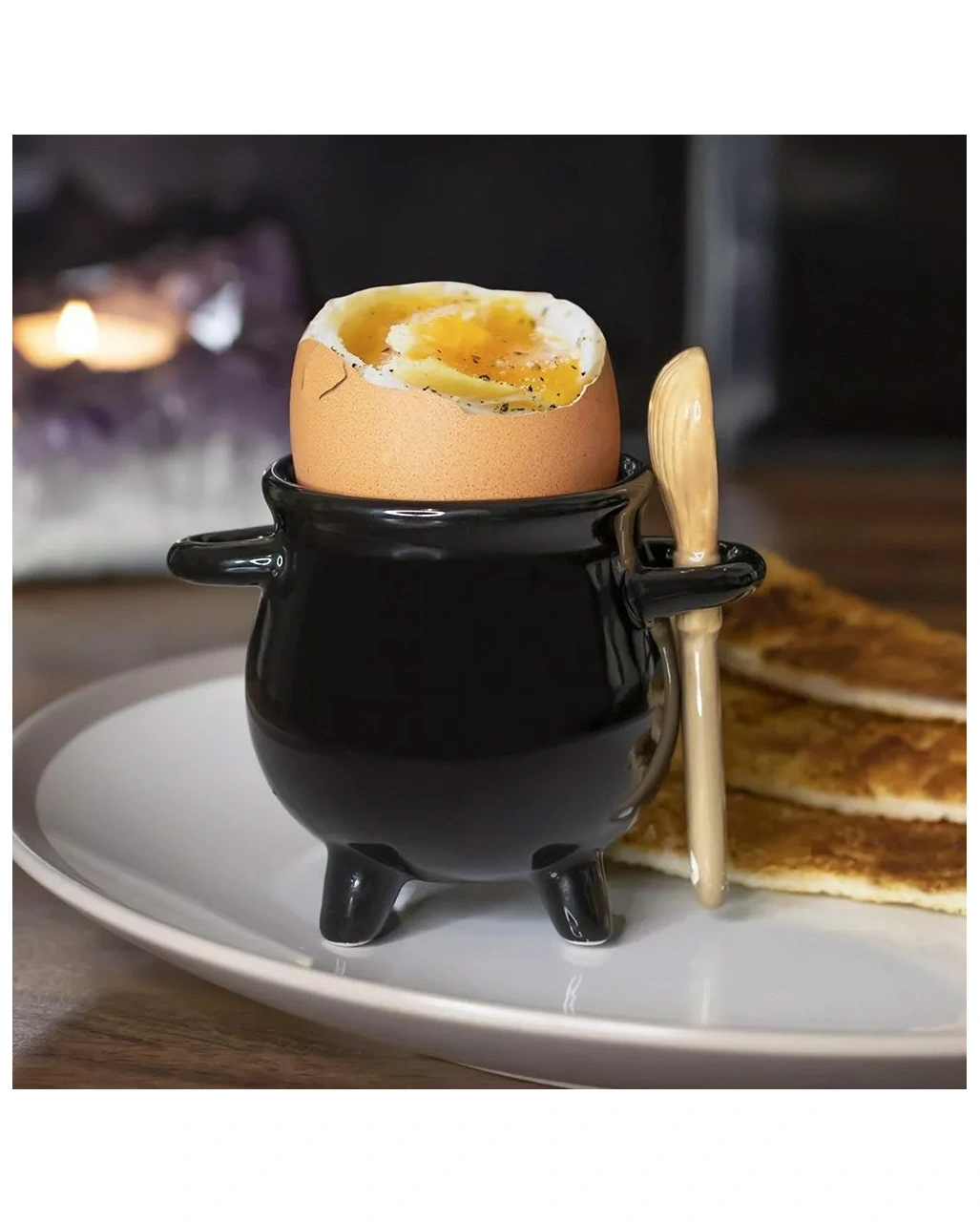 Hexenkessel als Eierbecher mit Löffel