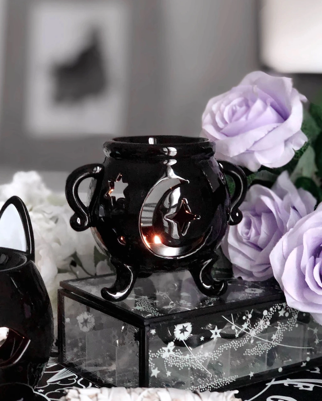 Für Fans des Okkulten und Liebhaber von Wicca-Deko sind unsere mystisch an mutenden KILLSTAR Artikel das perfekte Geschenk! Die Hexenkessel Duftöl Lampe von KILLSTAR schafft eine stimmungsvolle Atmosphäre, die dein Zuhause noch gemütlicher macht. Unsere schwarze Duftöl Lampe präsentiert sich mit ausgestanzten Monden und Sternen – ein magischer Hingucker, nicht nur für Halloween!