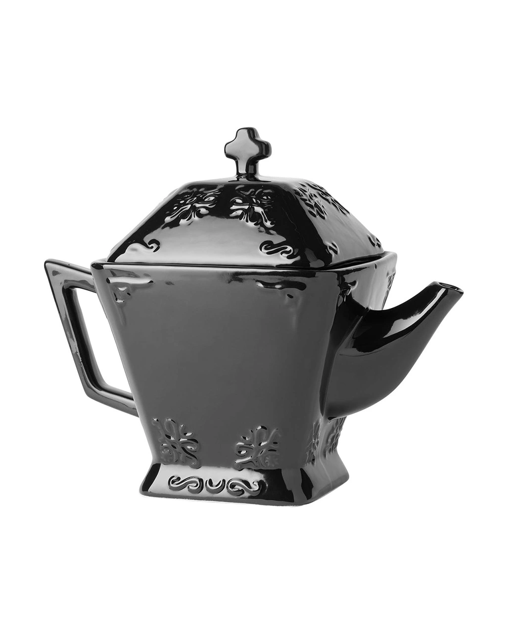 Tee-Liebhaber kommen mit dieser schwarzen Gothic Teekanne voll auf ihre Kosten. Das elegante Gefäß hält deinen tee über längere Zeit heiß und sorgt an jeder Teetafel für Staunen. Die Kitsu KILLSTAR Teekanne ist ein fantastischer Eyecatcher, der deine düstere Seite perfekt unterstreicht. Genieße deinen Lieblingstee mit deinen Freunden oder allein, und erfreue dich an dieser hochwertigen Keramik Kanne in Sargform. Die Kitsu-Reihe von KILLSTAR bietet schöne Gothic Wohnaccessoires und Küchenartikel, die begeistern. Am besten stöberst du in unserem Shop nach weiteren schönen Kitsu KILLSTAR Accessoires.
