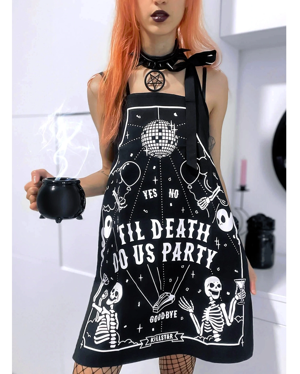 Witzige Gothic Küchenschürze mit feiernden Skeletten als Motiv