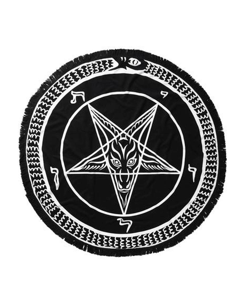 Die Runde Black Mass Tagesdecke KILLSTAR ist eine ganz besondere Kuscheldecke für Halloween- oder Gothic-Liebhaber und Fans von okkulten Ritualen. Um Baphomet, den Gehörnten, halb Mensch, halb Ziegenbock, ranken sich mindestens ebenso viele dunkle Mythen wie um das Pentagramm. Ob du nun selbst tiefschwarze Rituale abhältst oder einfach nur eine mystisch anmutende Decke für deine Gruft suchst, diese Gothic Decke wird beinahe jeder deiner düsteren Leidenschaften befriedigen.