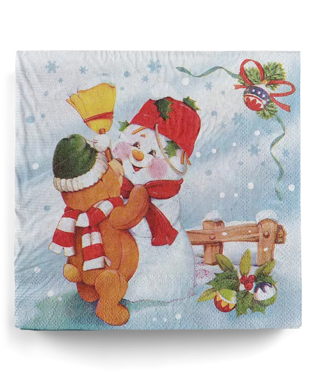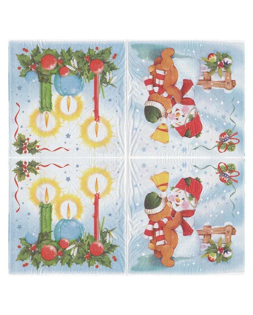 20 St. Weihnachtsservietten mit Schneemann- und Kerzen-Motiv