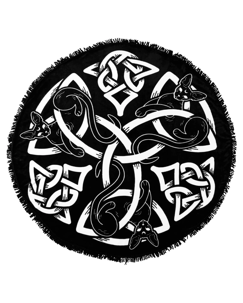 Die Sith Tagesdecke Rund von KILLSTAR ist aus einem weichen Material gefertigt und mit einer riesigen Kontrastgrafik aus keltischen Schnörkeln & Katzen designt. Entdecke einzigartiges KILLSTAR Wohnzubehör & Geschenkideen auf Karneval Universe.