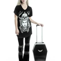 Fledermäuse und Totenköpfe machen den Spirit Board Wandbehang KILLSTAR zu einem perfekten Wohnaccessoire für deine Gruft. Hänge den Ouija Brett Wandbehang über dein Bett und träume von dunklen Ritualen, bei denen anderen die Haare zu Berge stehen. Dir aber nicht. Du bist ein Fan der mystischen Welt. Der Hexenbrett Wandbehang, der das Ouija Brett Motiv auf beindruckenden 216 cm x 149 cm präsentiert, ist schwarz. Die Ouija Hexenbrett Zeichen sowie die Fledermaus und die Totenköpfe werden in weißen Lettern und Konturen dargestellt. Weitere Gothic Deko findet ihr in einer riesigen Auswahl hier im Shop.