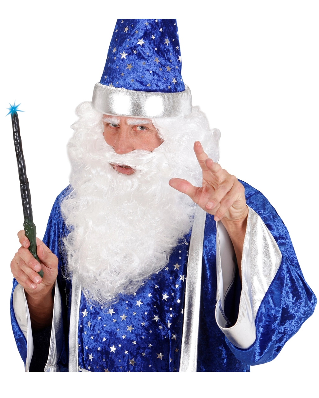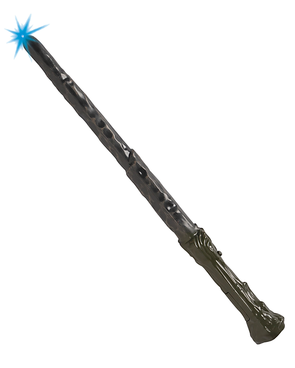 Der tönende & leuchtende Zauberstab ist ein stimmungsvolles Zauber Kostümzubehör und hat eine Länge von 36 cm, ist im Holzdesign gehalten und am Griff etwas dicker. An der Spitze dieses Faschingszubehörs befindet sich eine LED die auf Knopfdruck blau aufleuchtet, gleichzeitig ertönt eine magischer Klang. Besonders gut lässt sich das Magier Myrddin Premium Kostüm und die Harry Potter Brille dazu kombinieren.