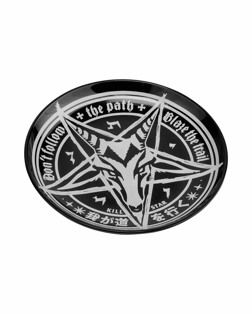 Die Trailblazer Schmuck & Zubehör Schale KILLSTAR ist ein fantastischer Geschenkartikel für Gothic Fans. Was für ein okkulter Blickfang auf deinem Tisch: Baphomet ist ist Gut und Böse zugleich, sein Antlitz inmitten des Pentagramms ist ein besonderes Zeichen seiner mystischen Allgegenwärtigkeit. Unsere okkulte Deko Schale ist ideal, um dein Interesse an okkulten Ritualen mit einem weiteren Stück extravaganter Gothic Deko zu demonstrieren. Die Schale bietet darüber hinaus Gelegenheit, Krimskrams oder deinen Lieblingsschmuck stilsicher zusammen zu halten.
