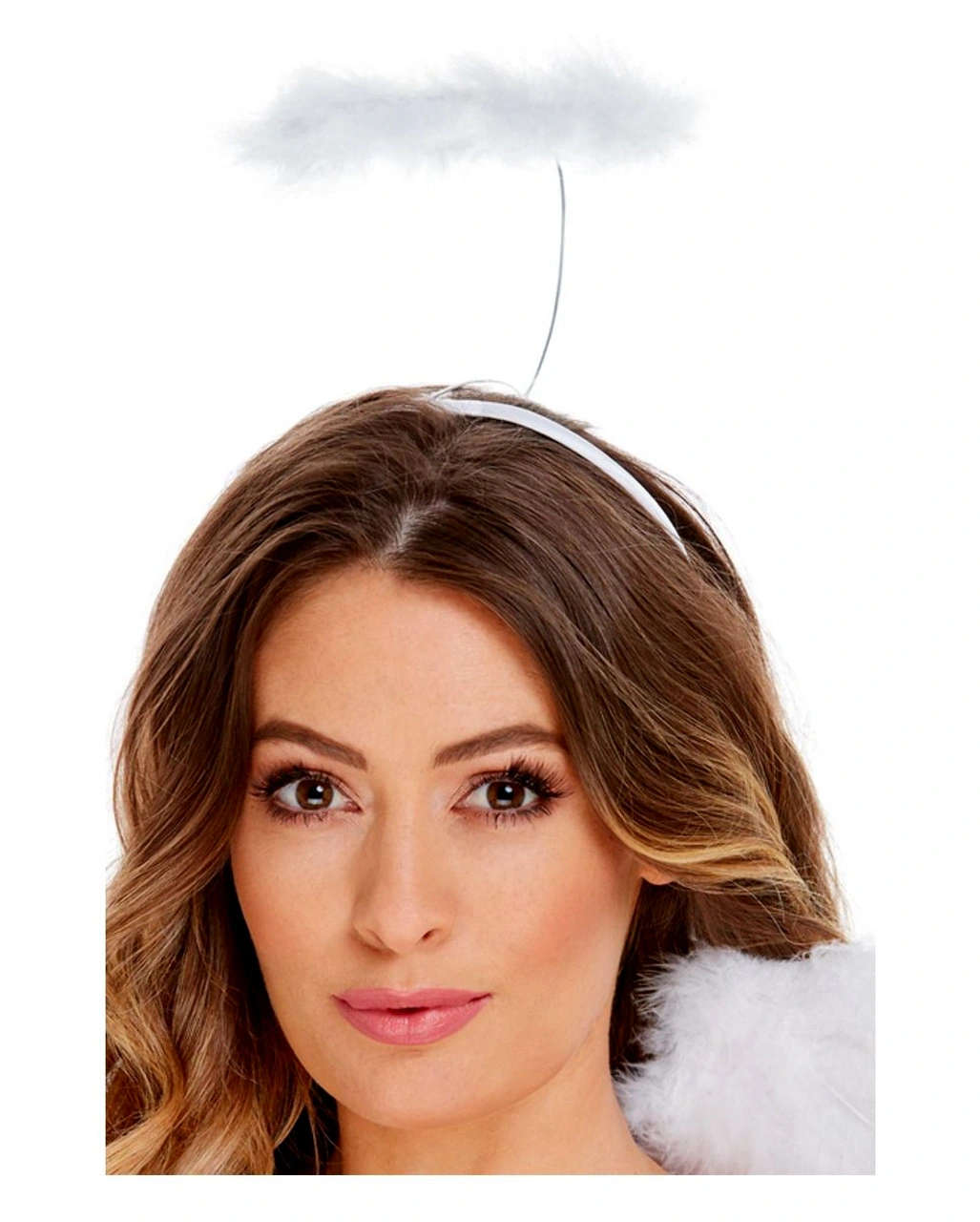Lieferumfang: 1 x Weißer Heiligenschein mit Federn